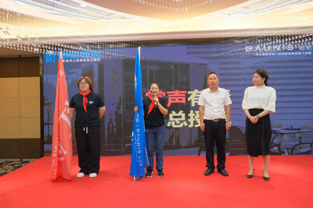 會議開始前由明家裝飾董事長盧森軍,在啟動大會現(xiàn)場為啟動會致辭,董事長盧森軍為紅/藍兩只隊伍授旗。